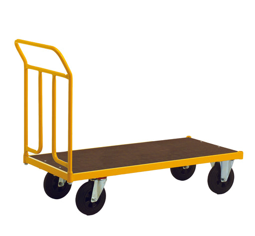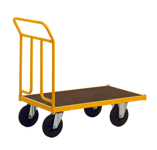 Se alla detaljerLättmanövrerad plattformsvagn i gullackerat stål Skiva i MDF direktlaminat, vilket ger en slitstark yta Höjd till bygel 1020 mm, lastplan 28...