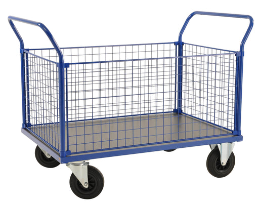 Se alla detaljerLättmanövrerad vagn tillverkad i blålackerat stål, med 1 nätgavel - höjd 520 mm Skiva av MDF direktlaminat, vilket ger en slitstark yta Bygl...